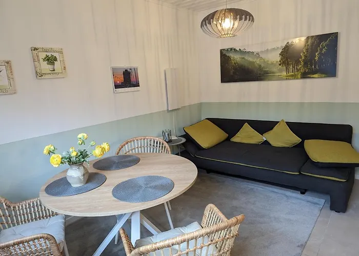 1-slaapkamer Ferienwohnung 'Kersten' ligt binnen|op 4 km afstand van het Nostalgikum. Het 45 m^2 grote appartement heeft een terras met uitzicht op de tuin